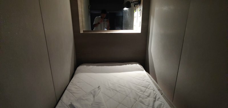 雖然我睡的是單人床,但床位空間比我想像的還大,不過要先自己舖床。每個床位都提供一套枕頭、棉被與床單,然後有一個密碼鎖置物櫃可以放置重要物品。